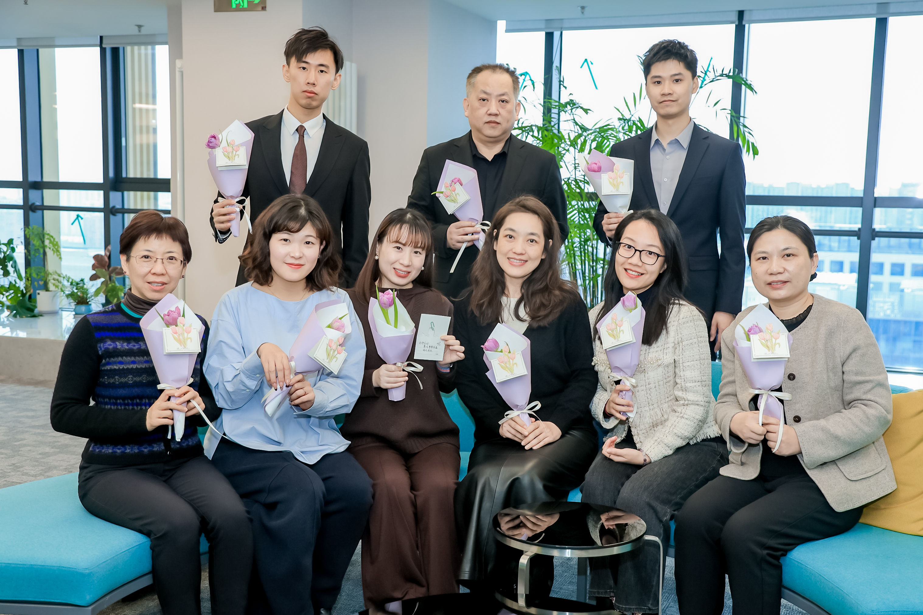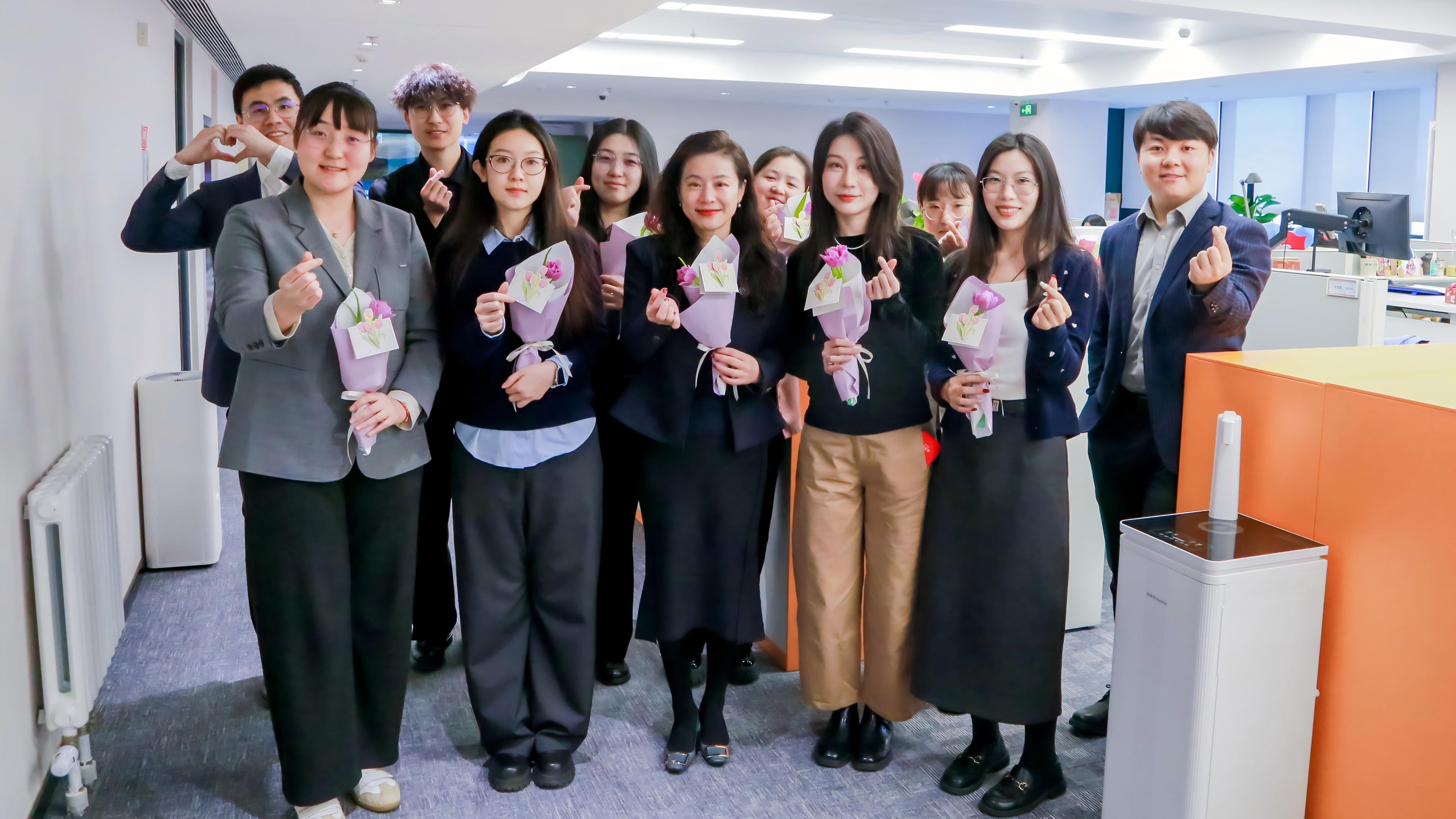 活动当天,一份暖心惊喜率先登场——公司男神团化身“送福使者”为每一位女员工送上鲜花与祝福。一句句“三八节快乐”“愿你芳华永驻”,营造出浓郁的节日氛围。